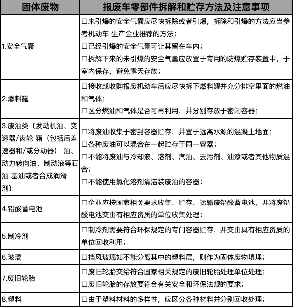 回收拆解企業(yè)拆解的尾氣后處理裝置、危險(xiǎn)廢物應(yīng)當(dāng)如實(shí)記錄,并交由有處理資質(zhì)的企業(yè)進(jìn)行拆解處置,不得向其他企業(yè)出售和轉(zhuǎn)賣(mài)。各固體零部件詳細(xì)拆解及處理方法見(jiàn)下表1